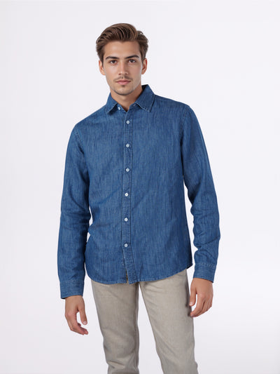 Celio* Men Blue Solid Regular Fit Cotton Shirts