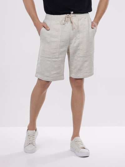 Celio* Men Beige Solid Straight Fit Cotton-Linen-Blend Trousers