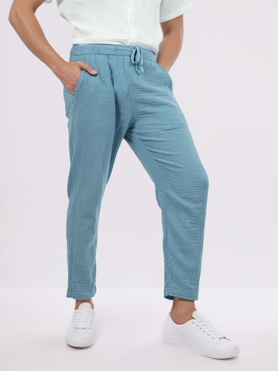 Celio* Men Blue Solid Jogger Fit Cotton Trousers