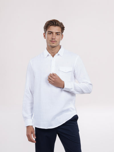 Celio* Men White Solid Regular Fit Cotton Shirt