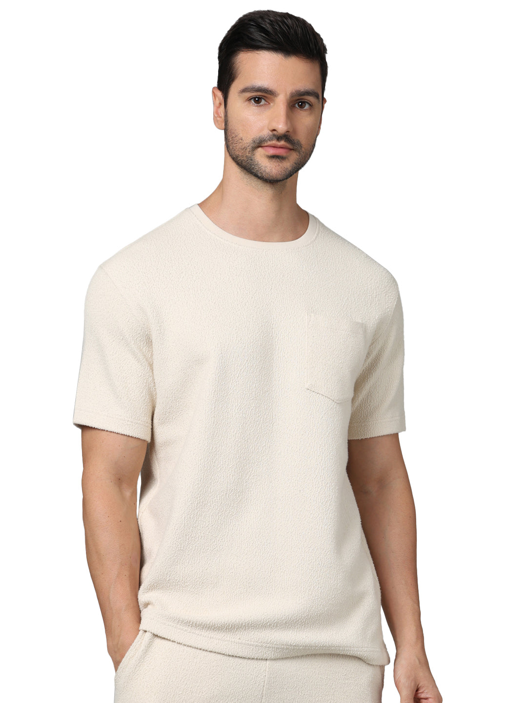 Celio* Solid Regular Fit Cotton Off White T-Shirt