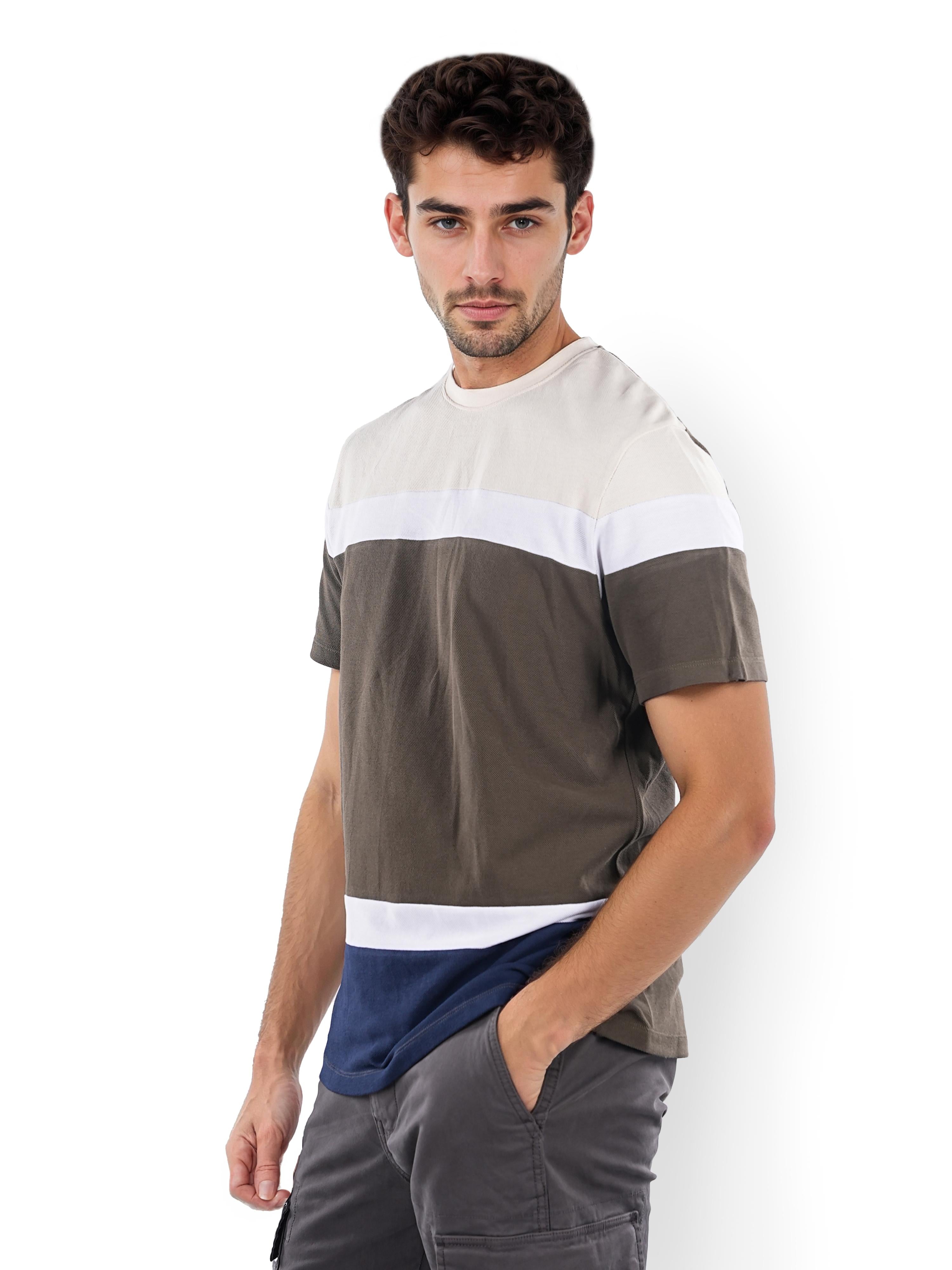 Celio* Colourblock Regular Fit Cotton Olive T-Shirt