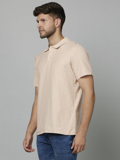 Celio Men Peach Solid Regular Fit Cotton T-Shirts