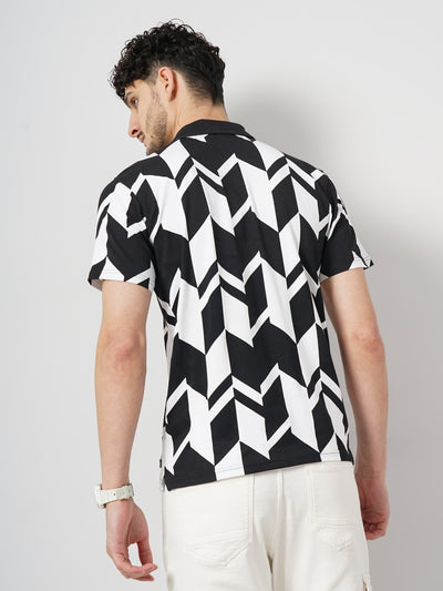 Celio* Geometric Regular Fit Viscose Blue Shirt