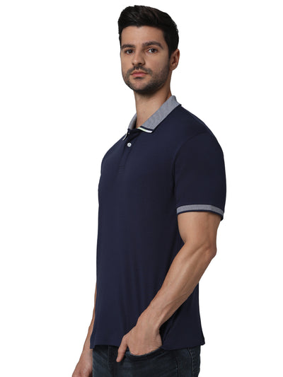 Celio* Solid Regular Fit Cotton Navy Blue T-Shirt