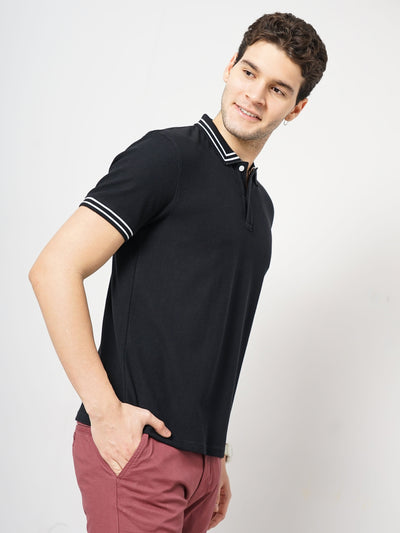 Celio* Solid Regular Fit Cotton Black T-Shirt