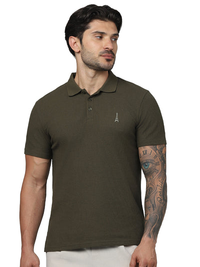 Celio* Solid Regular Fit Cotton Olive T-Shirt