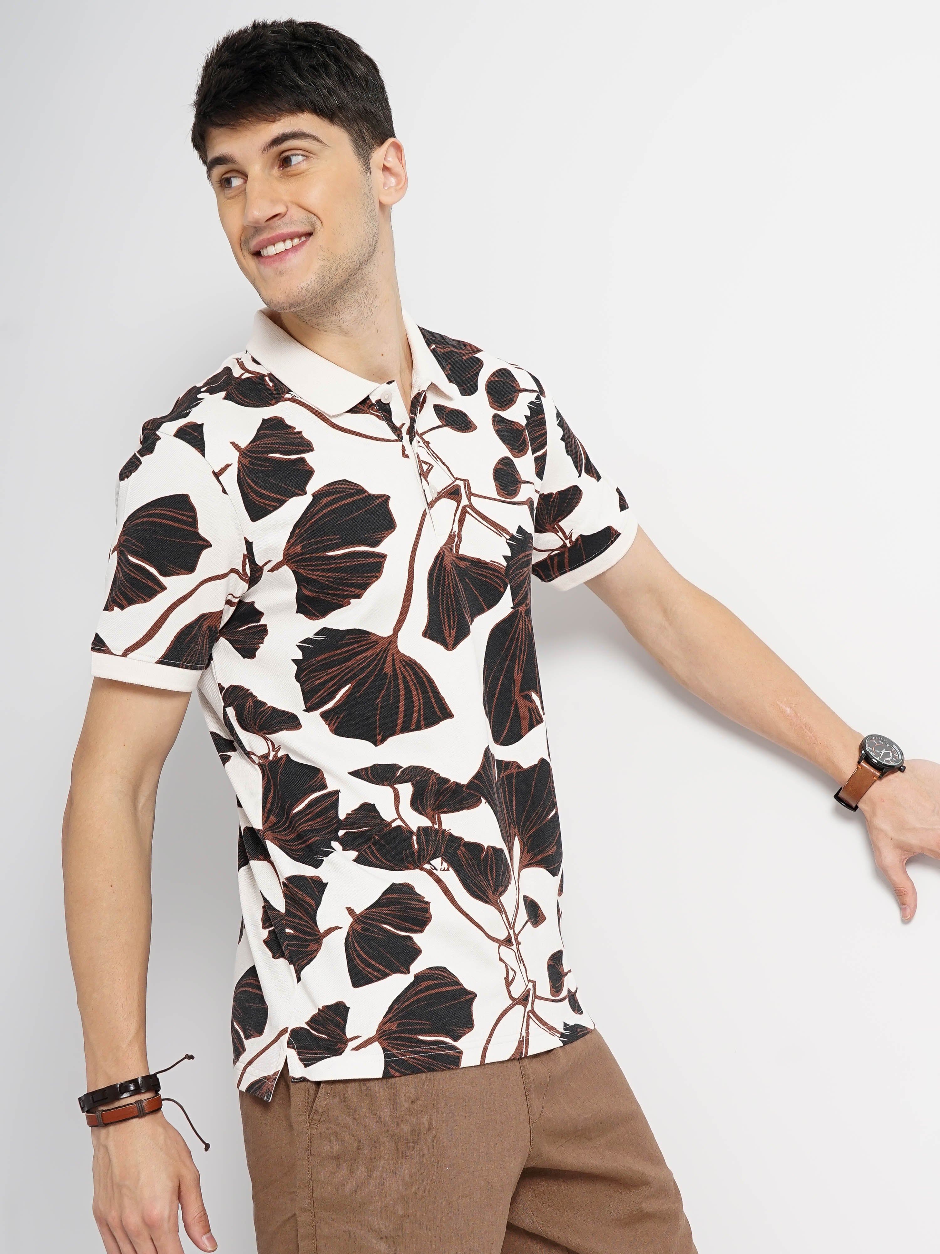 Celio* Printed Regular Fit Cotton Brown T-Shirt