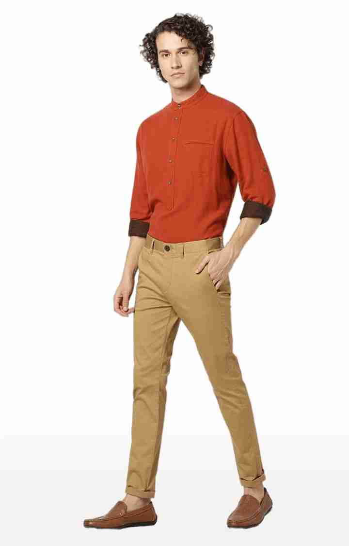 Celio* Men Brown Solid Regular Fit Linen Trousers
