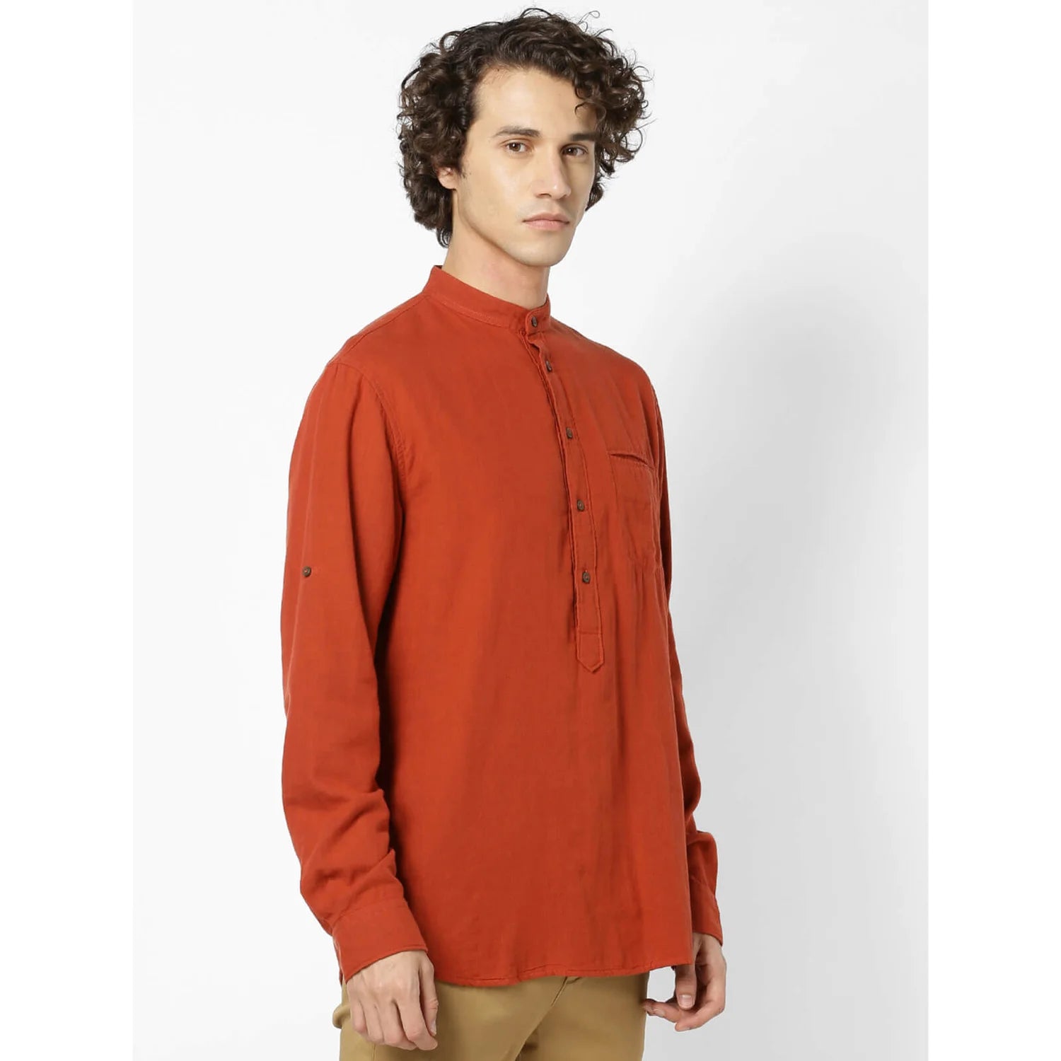 Celio* Solid Regular Fit Cotton Rust Shirt