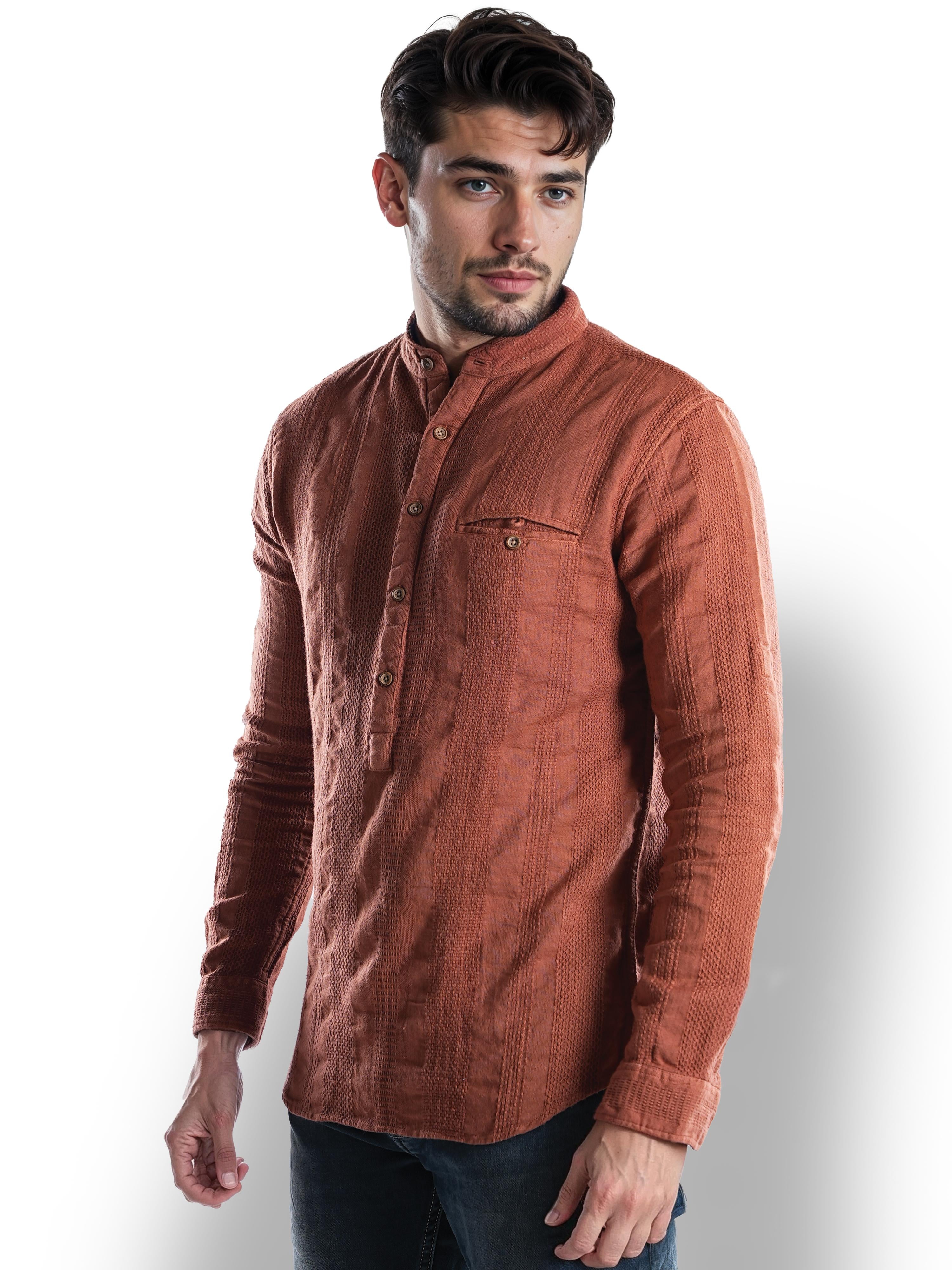 Celio* Tropical Regular Fit Cotton-Linen-Blend Rust Shirt