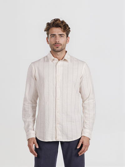 Celio* Men White Striped Regular Fit Cotton Fashion Shirt