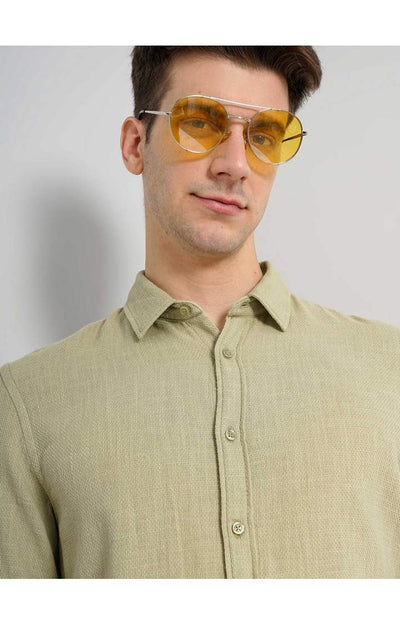 Celio* Men Olive Solid Regular Fit Cotton Shirt