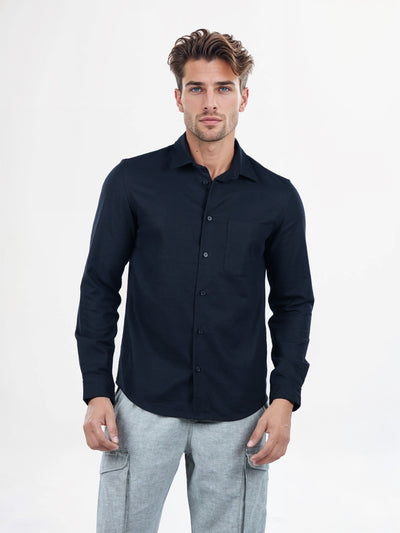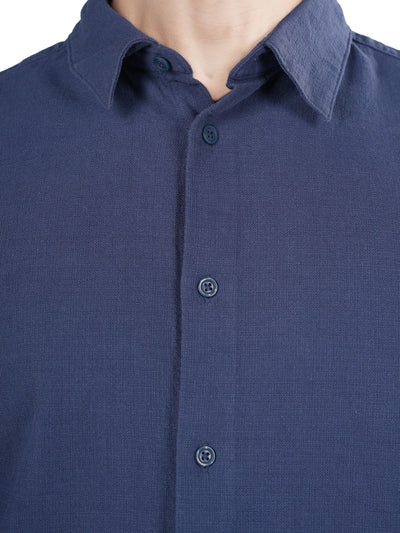 Celio* Solid Regular Fit Cotton Navy Blue Shirt