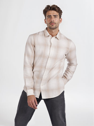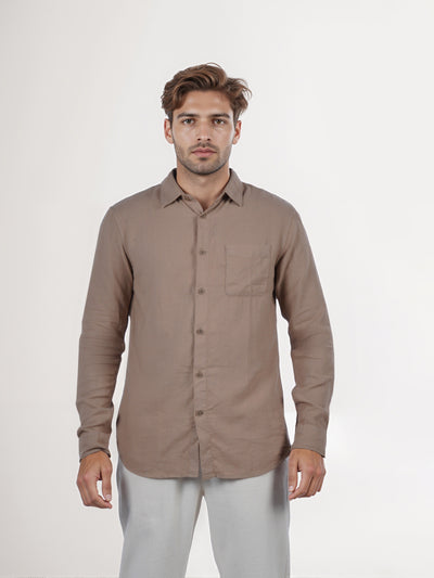 Celio* Men Beige Solid Regular Fit Cotton Shirt
