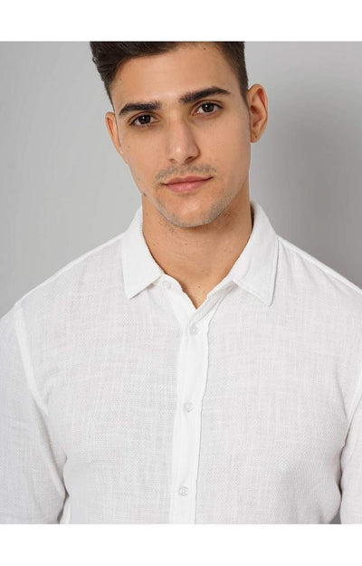 Celio* Solid Slim Fit Cotton White Shirt