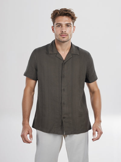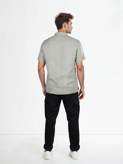 Celio* Solid Regular Fit Linen Green Shirts
