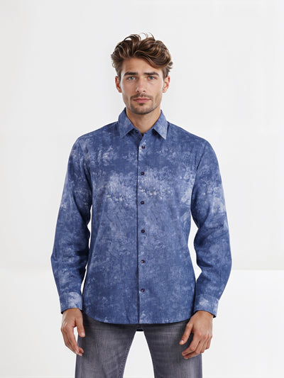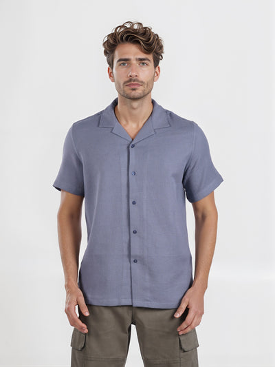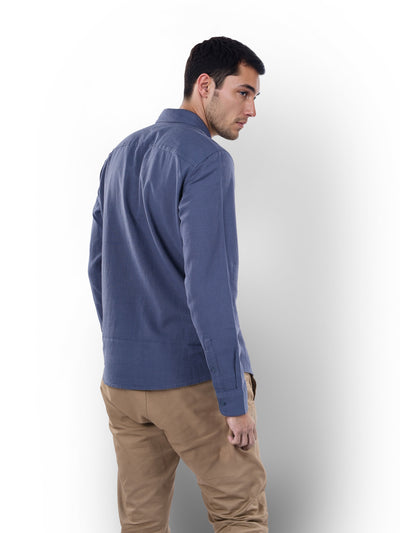 Celio* Men Blue Dyed Regular Fit Linen Shirt