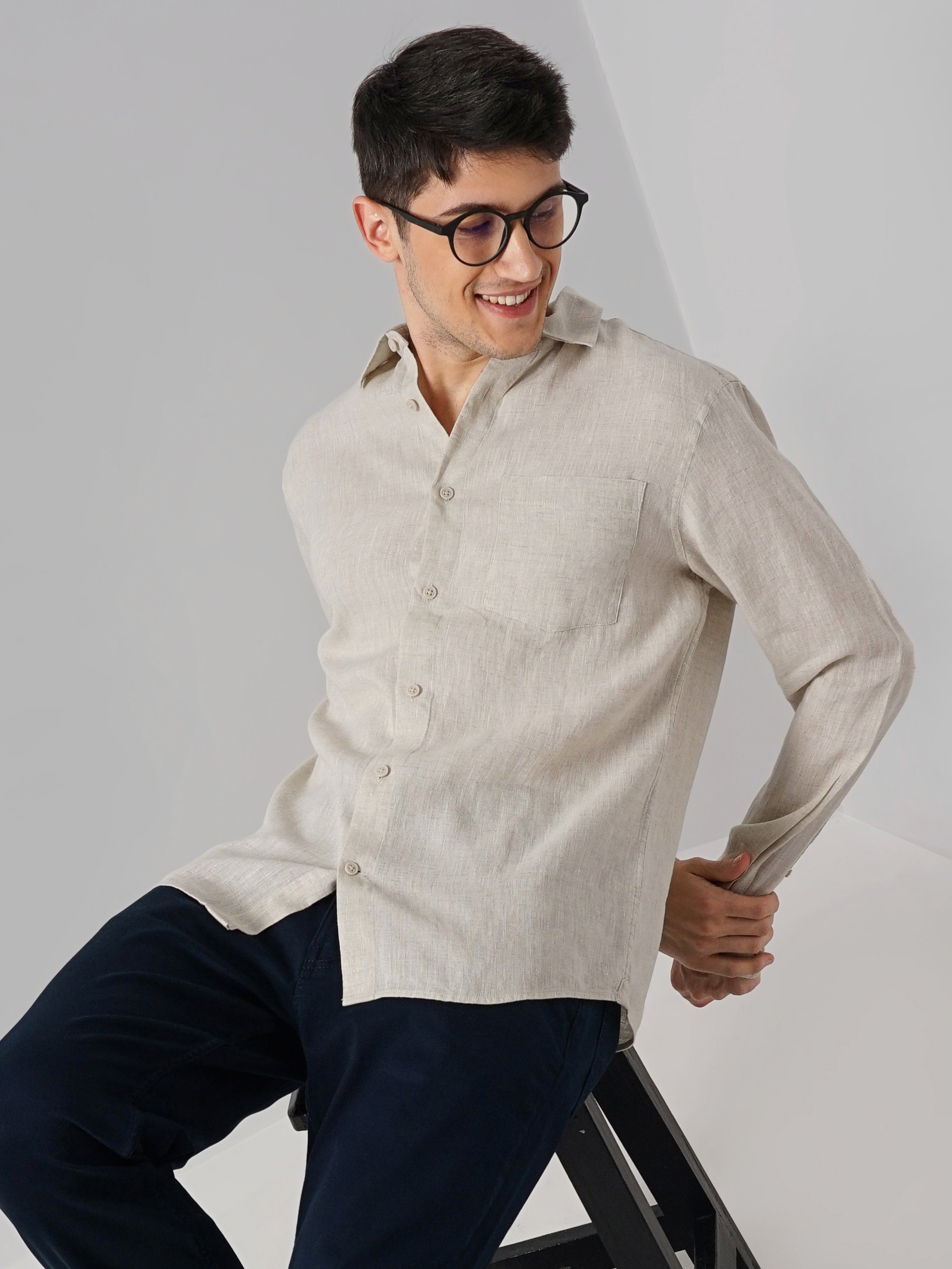 Celio* Solid Regular Fit Cotton Beige Shirt
