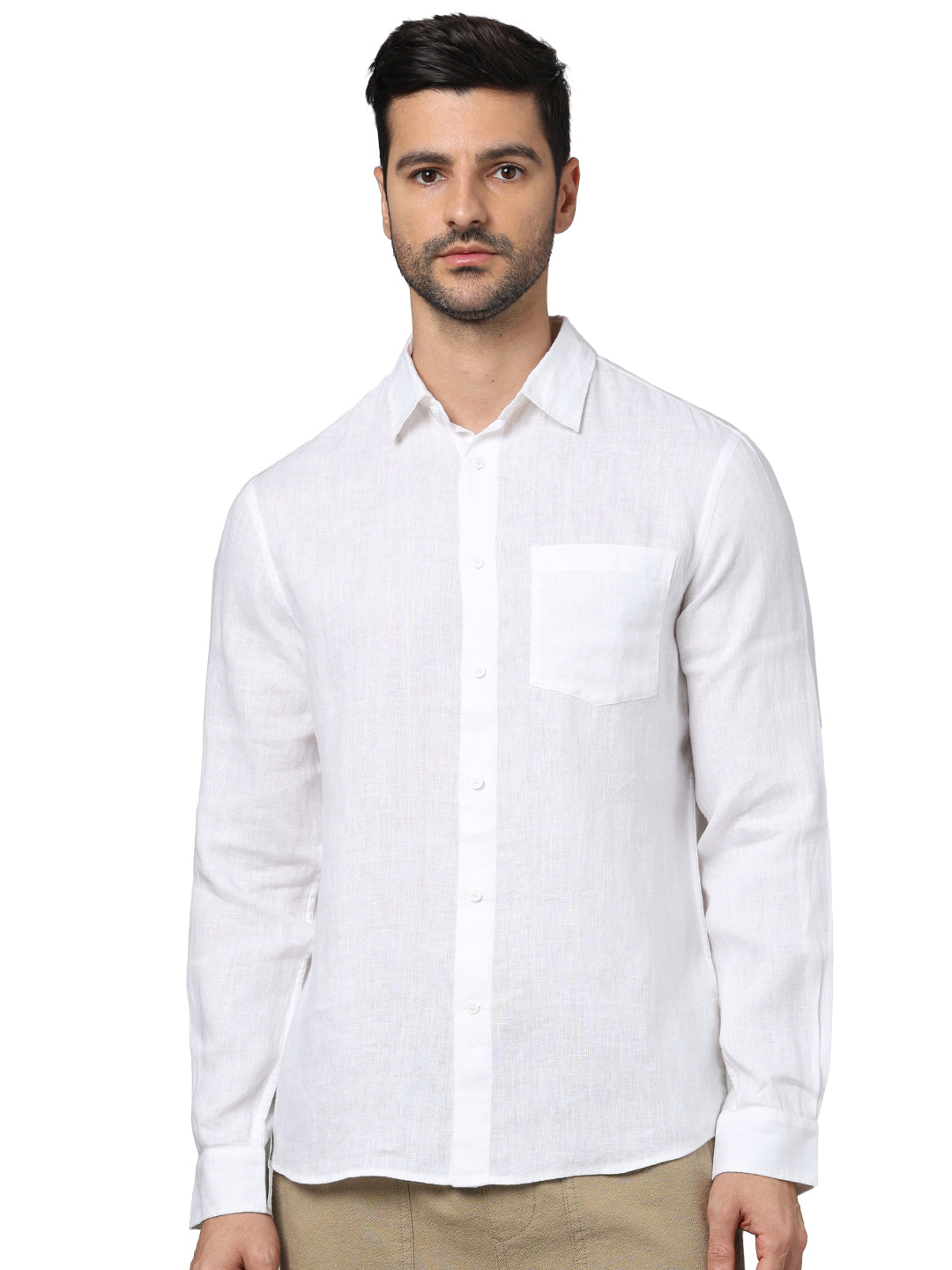Celio* Men White Solid Regular Fit Cotton Shirt
