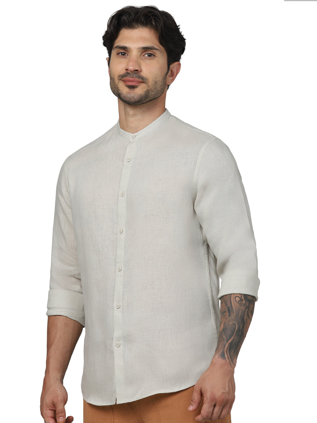 Celio* Solid Regular Fit Cotton-Blend Off White Shirts