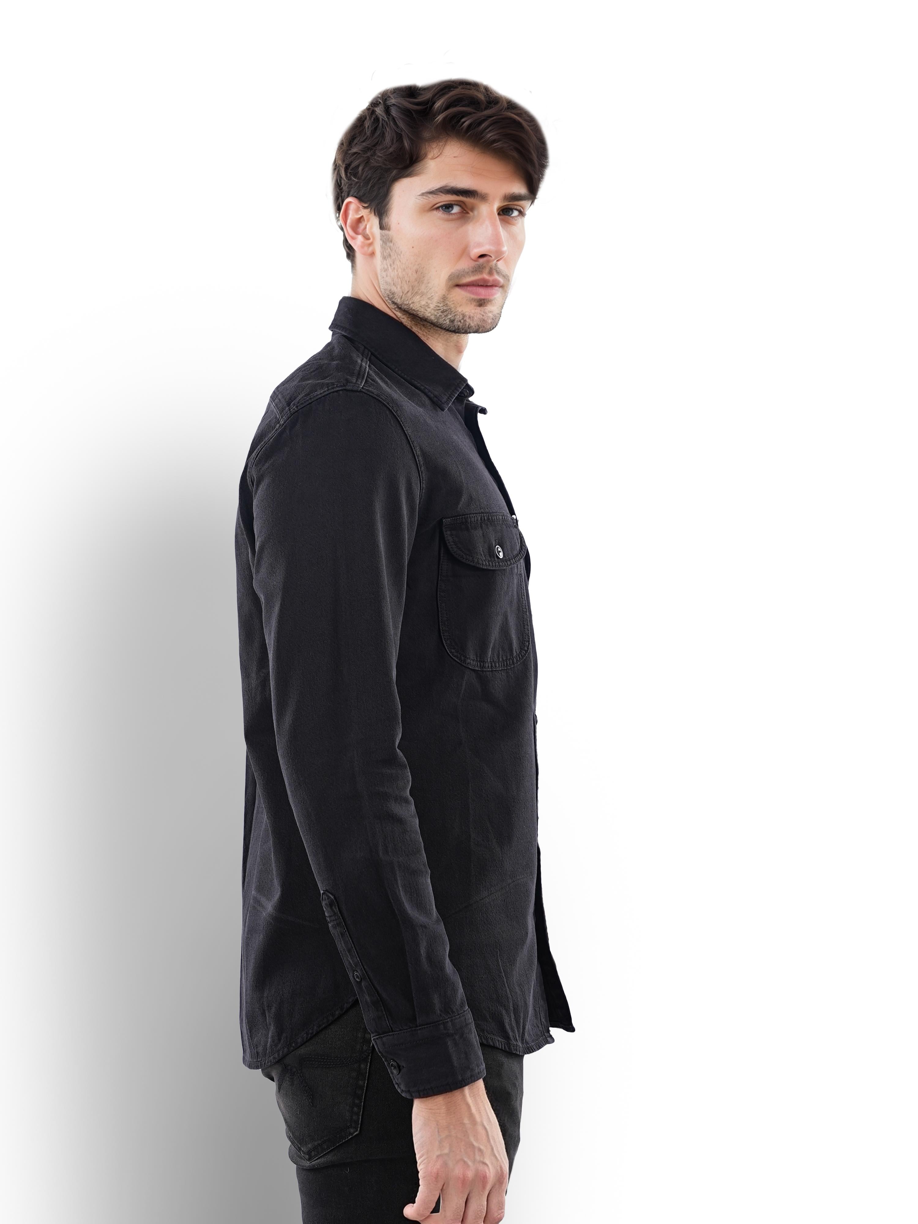 Celio* Embroidered Regular Fit Cotton Black Shirt
