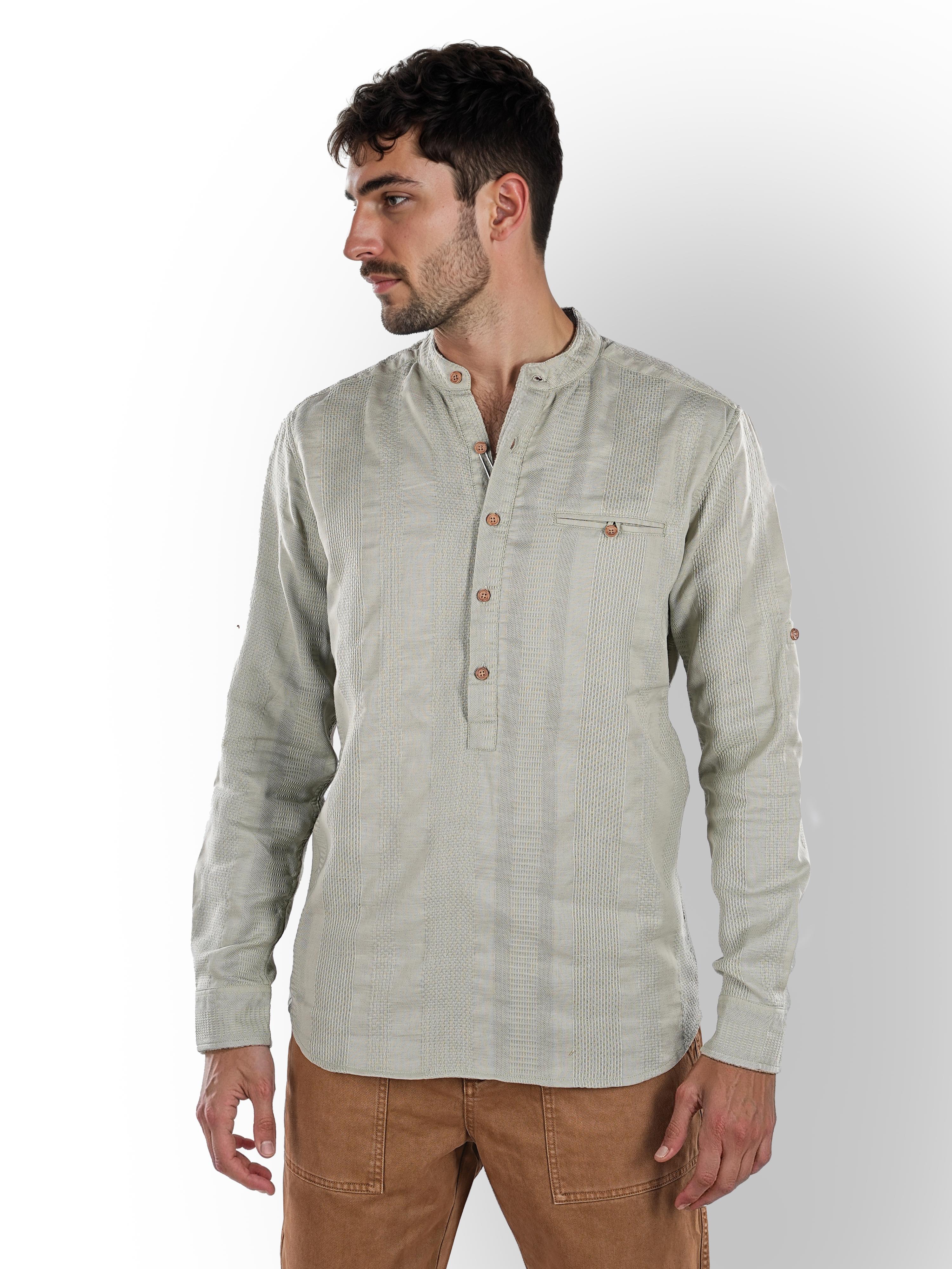 Celio* Men Beige Solid Overshirt Cotton-Tencel-Blend Shirts