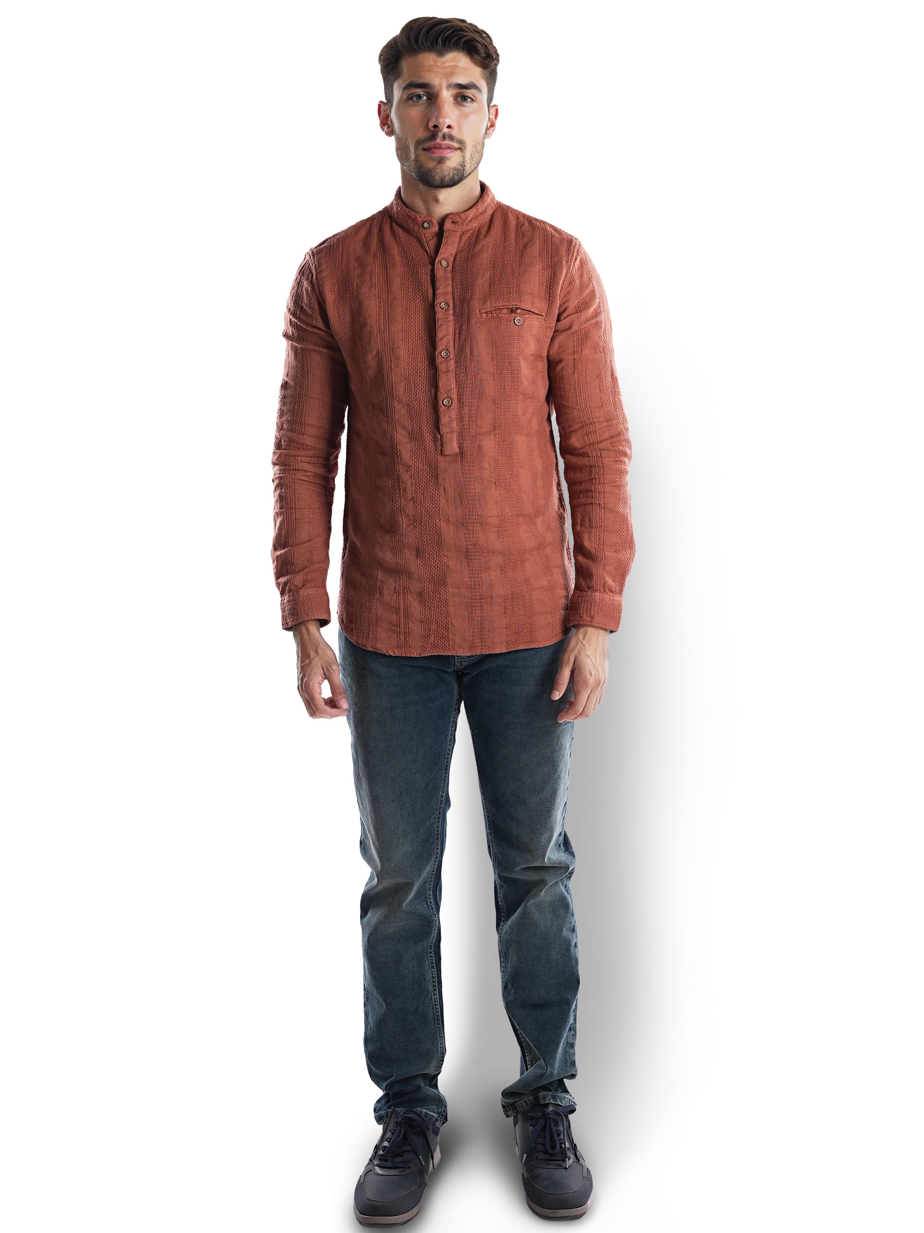 Celio* Men Maroon Solid Overshirt Polyester Shirt