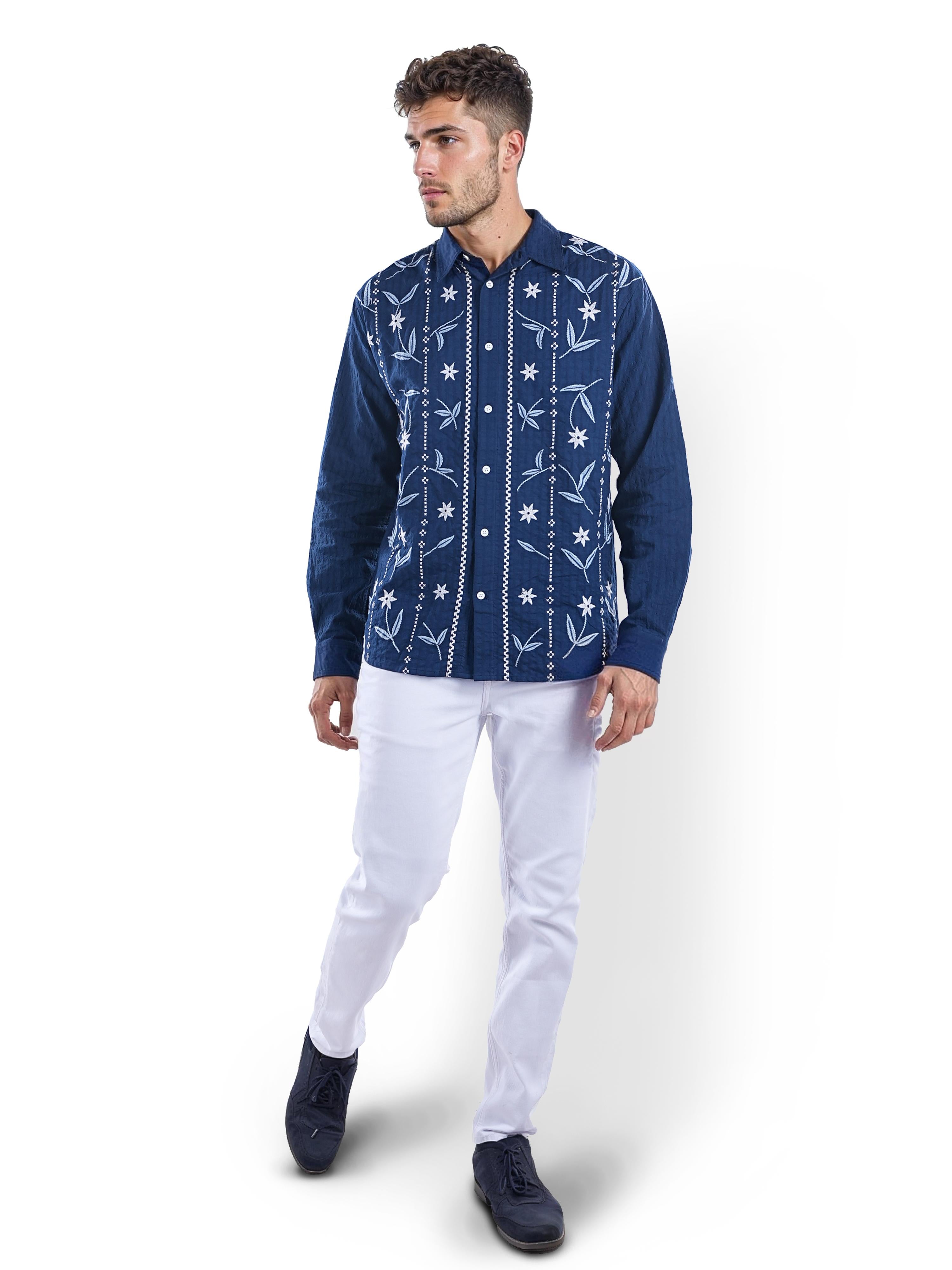 Celio* Tropical Regular Fit Cotton Navy Blue Shirt
