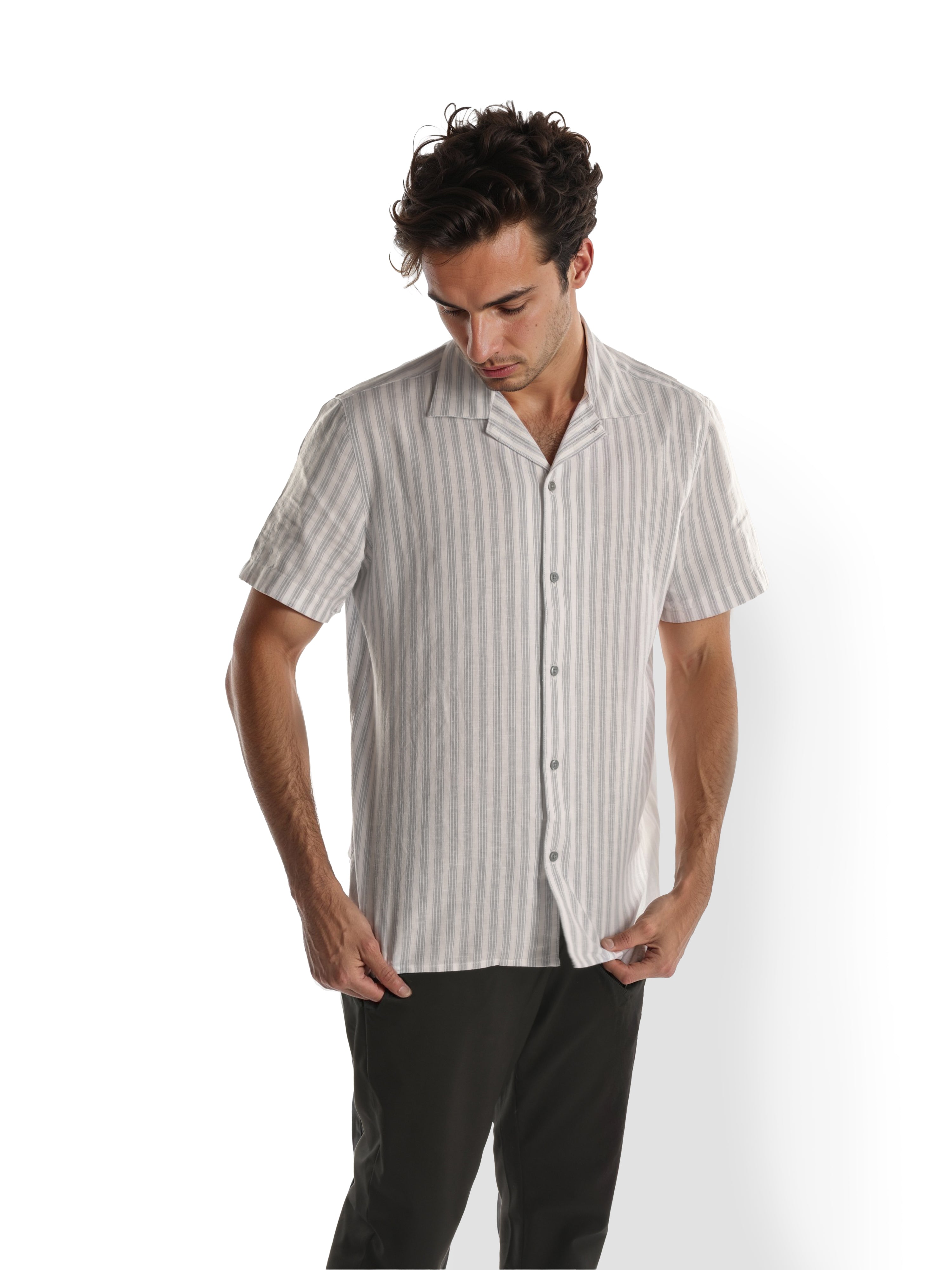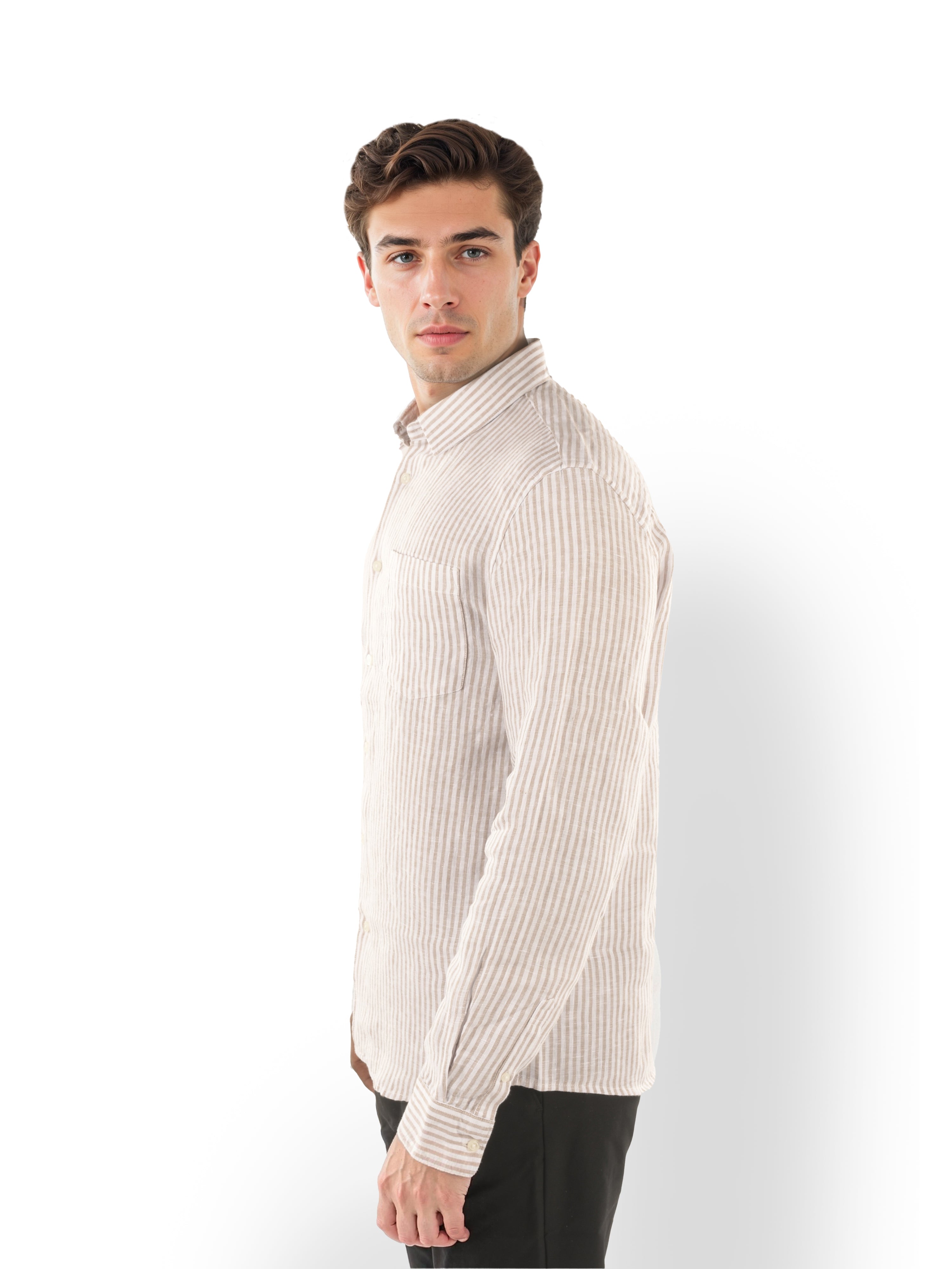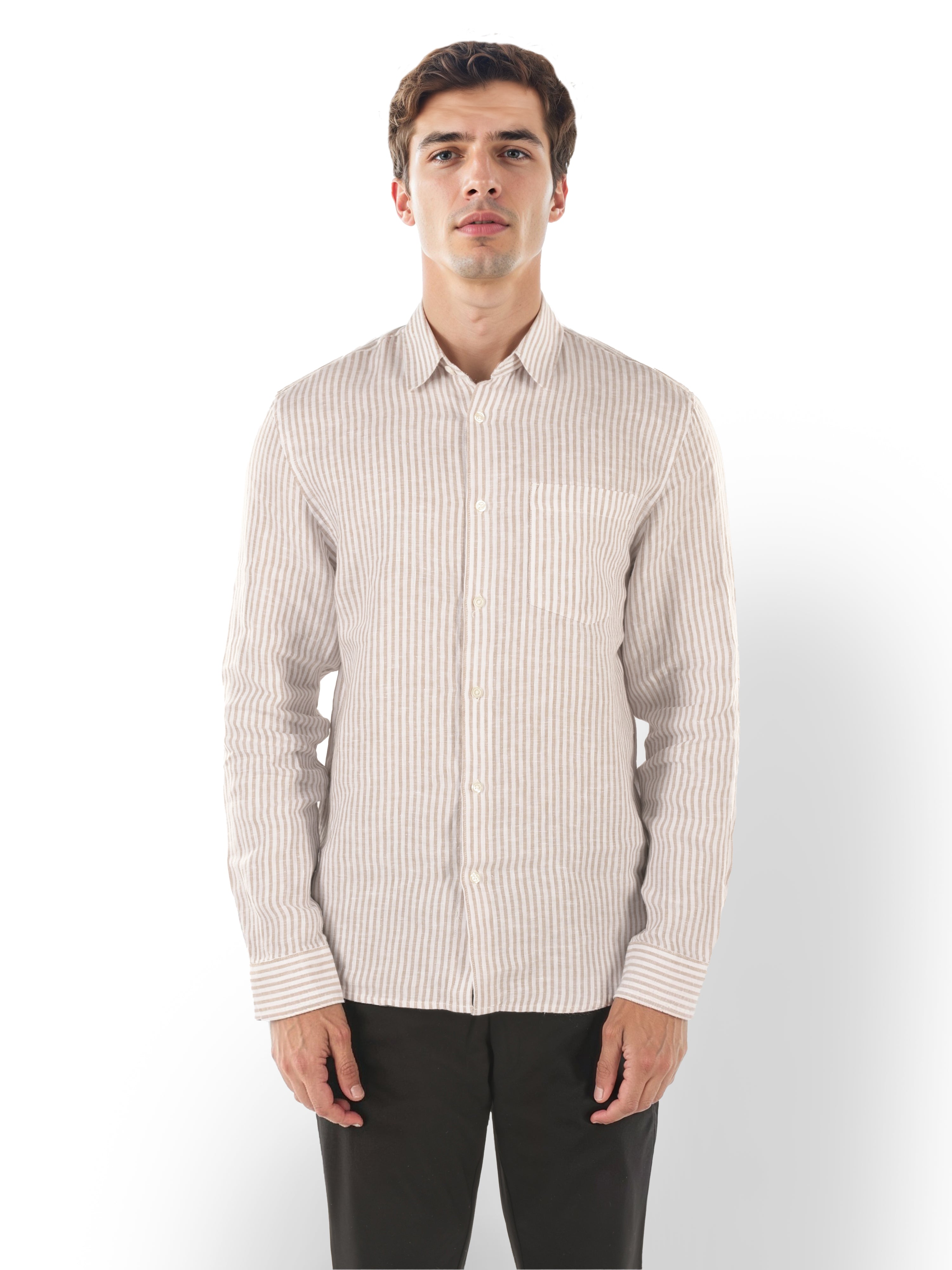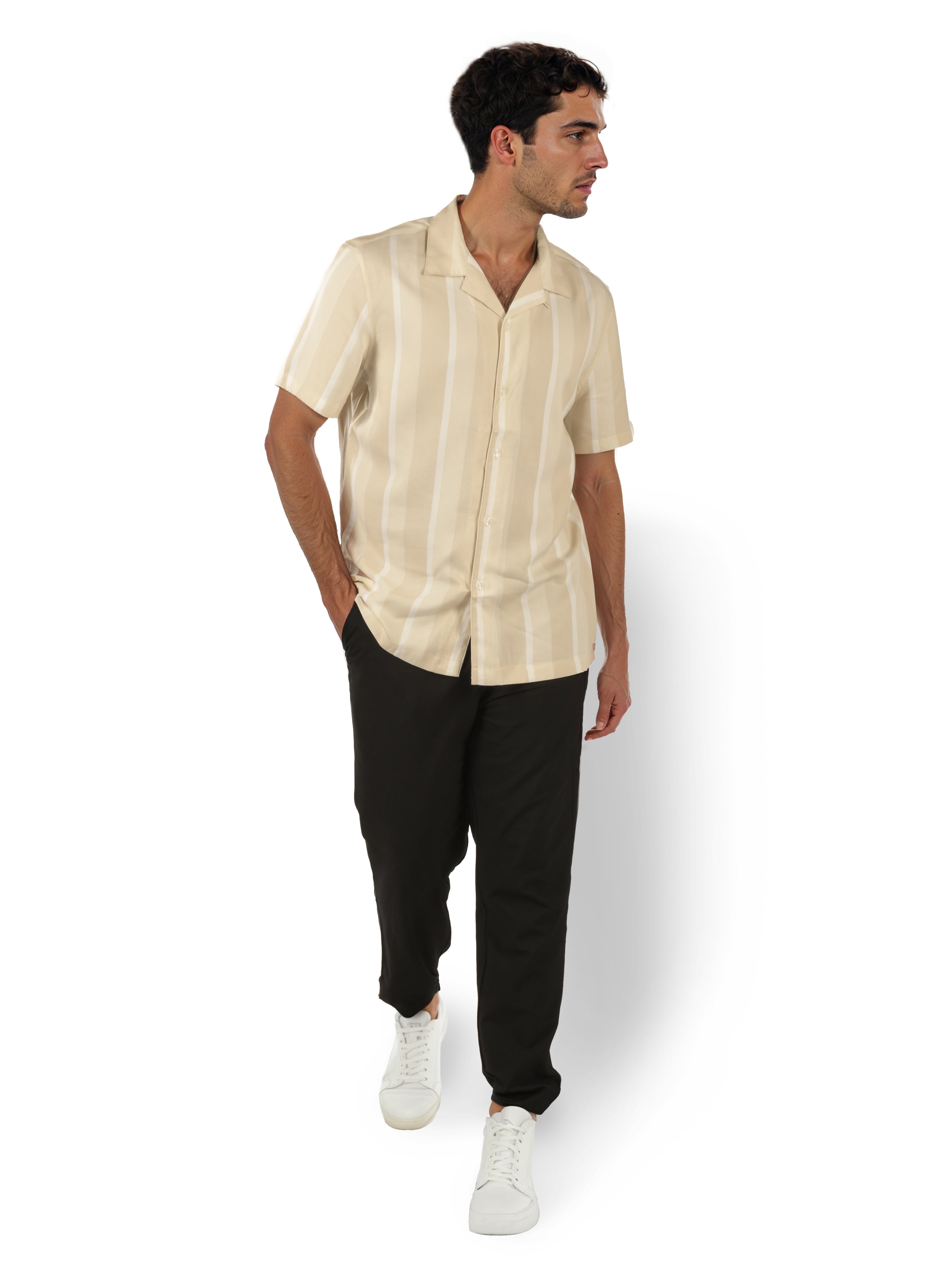 Celio* Striped Regular Fit Linen Blend Cream Shirt