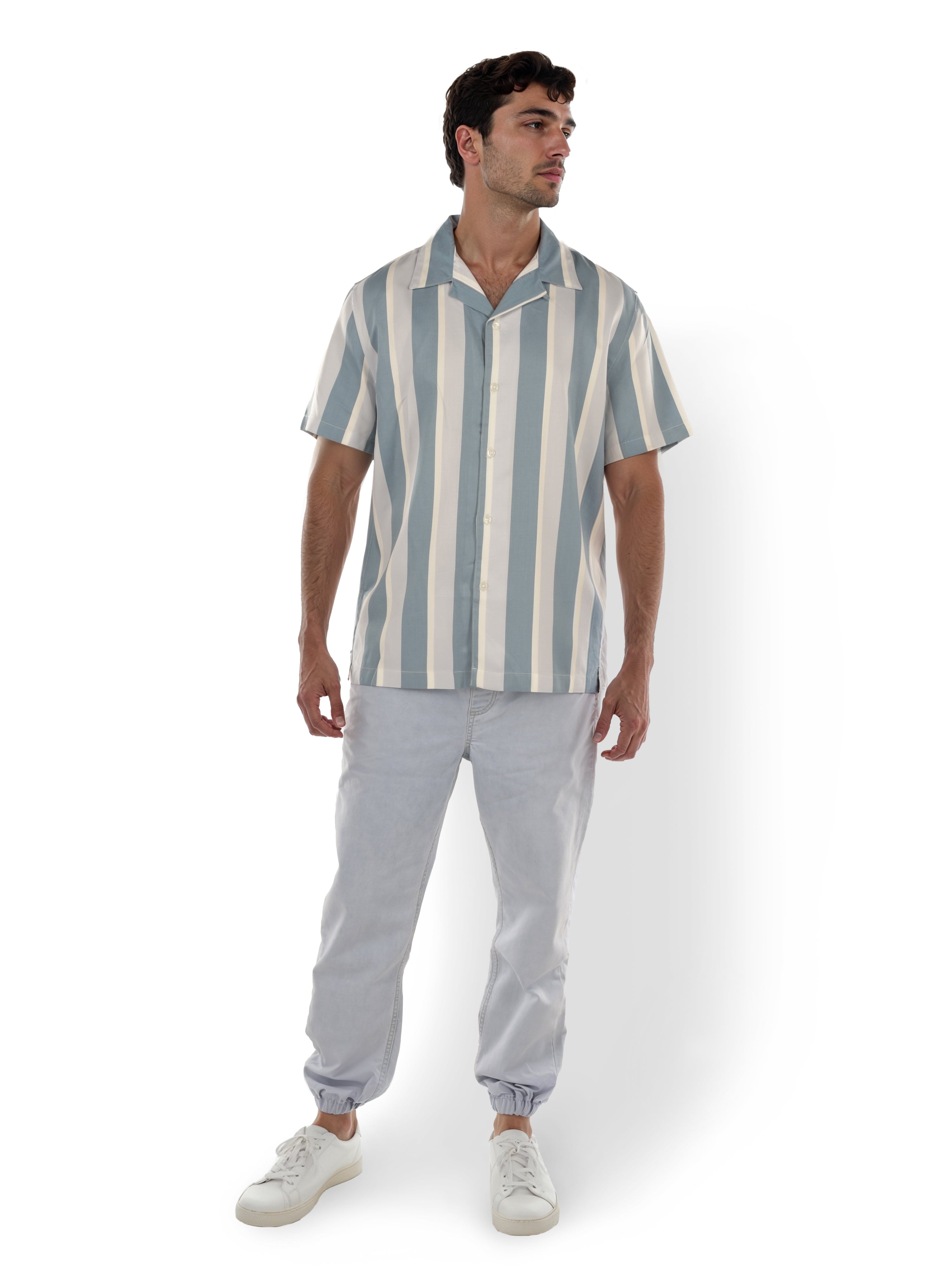 Celio* Striped Regular Fit Cotton Blue Shirt