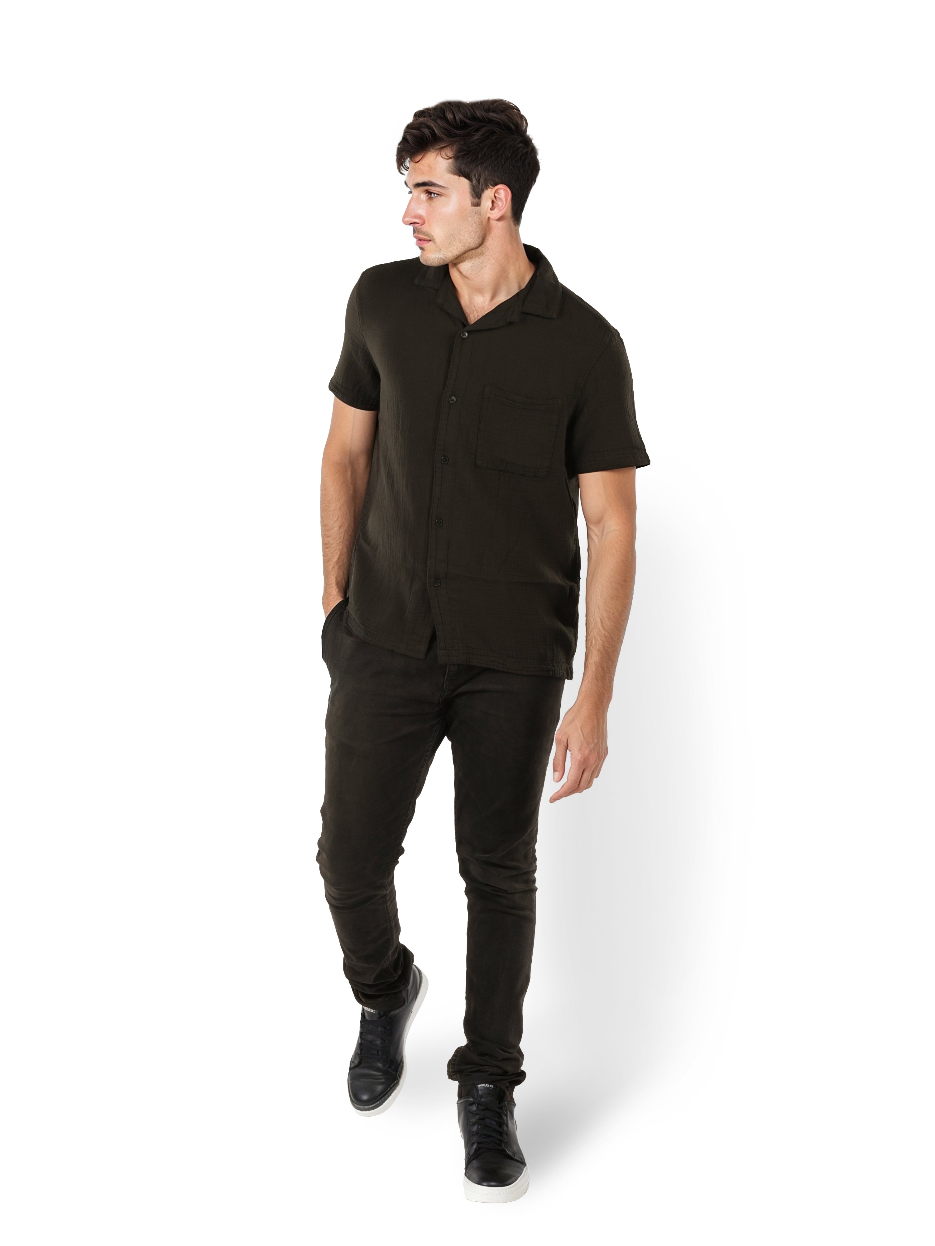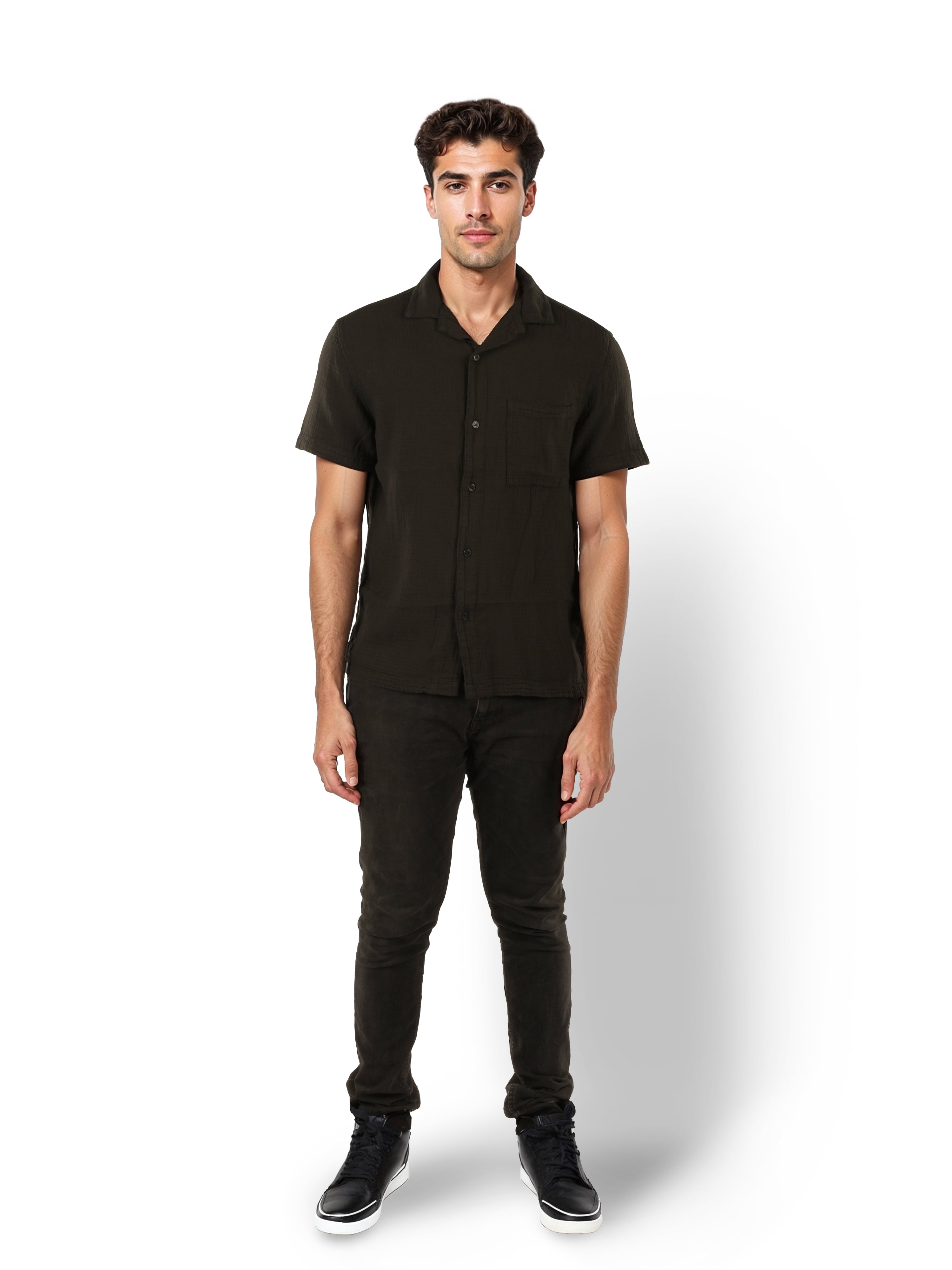Celio* Men Olive Solid Overshirt Cotton-Tencel-Blend Shirts