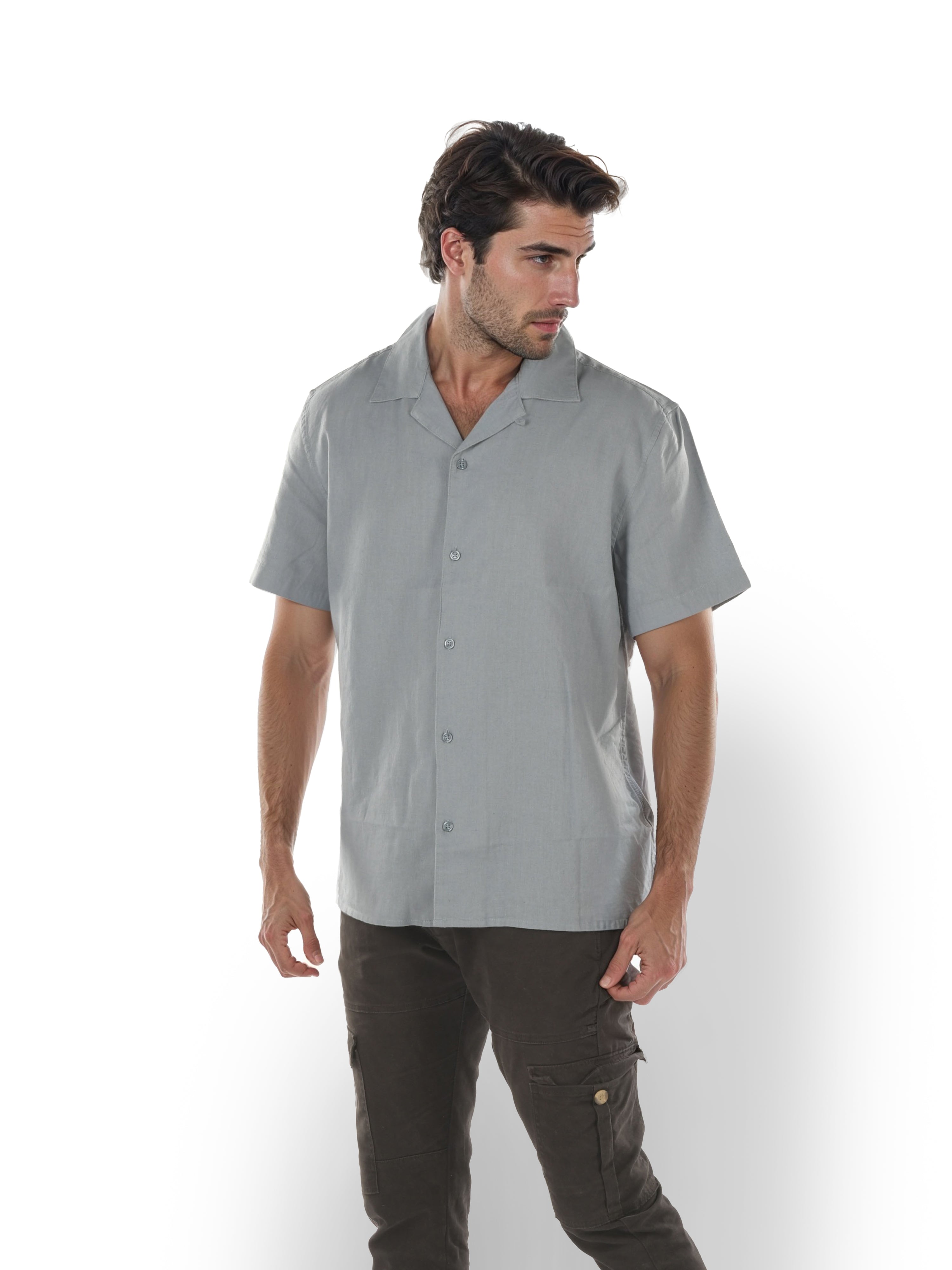 Celio* Solid Regular Fit Cotton-Blend Grey Shirt