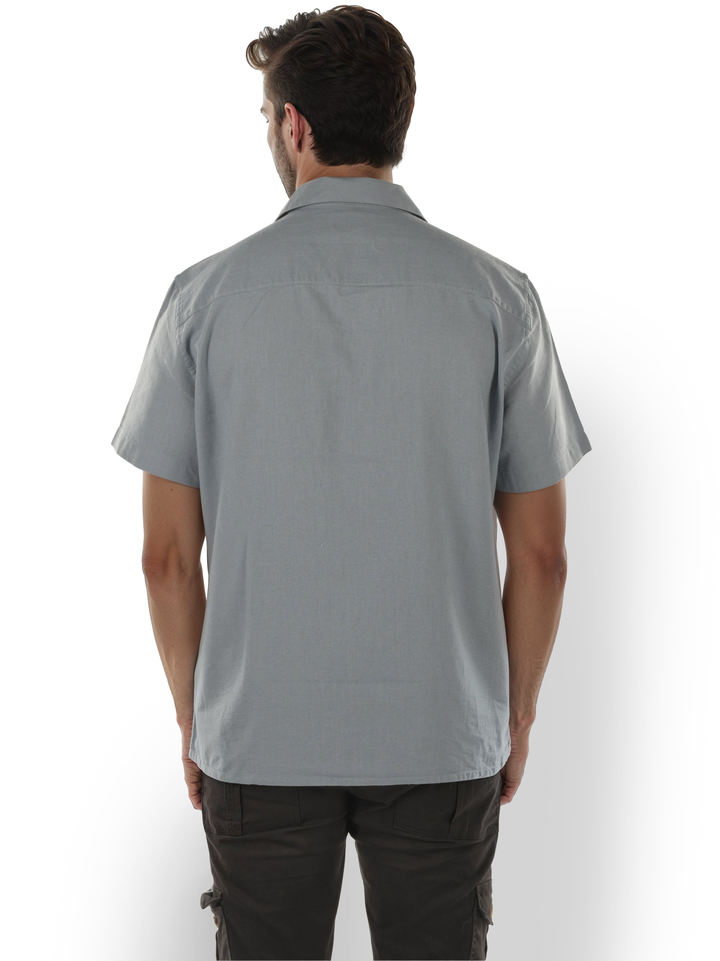 Celio* Men Grey Embroidered Boxy Fit Cotton-Linen-Blend Shirts
