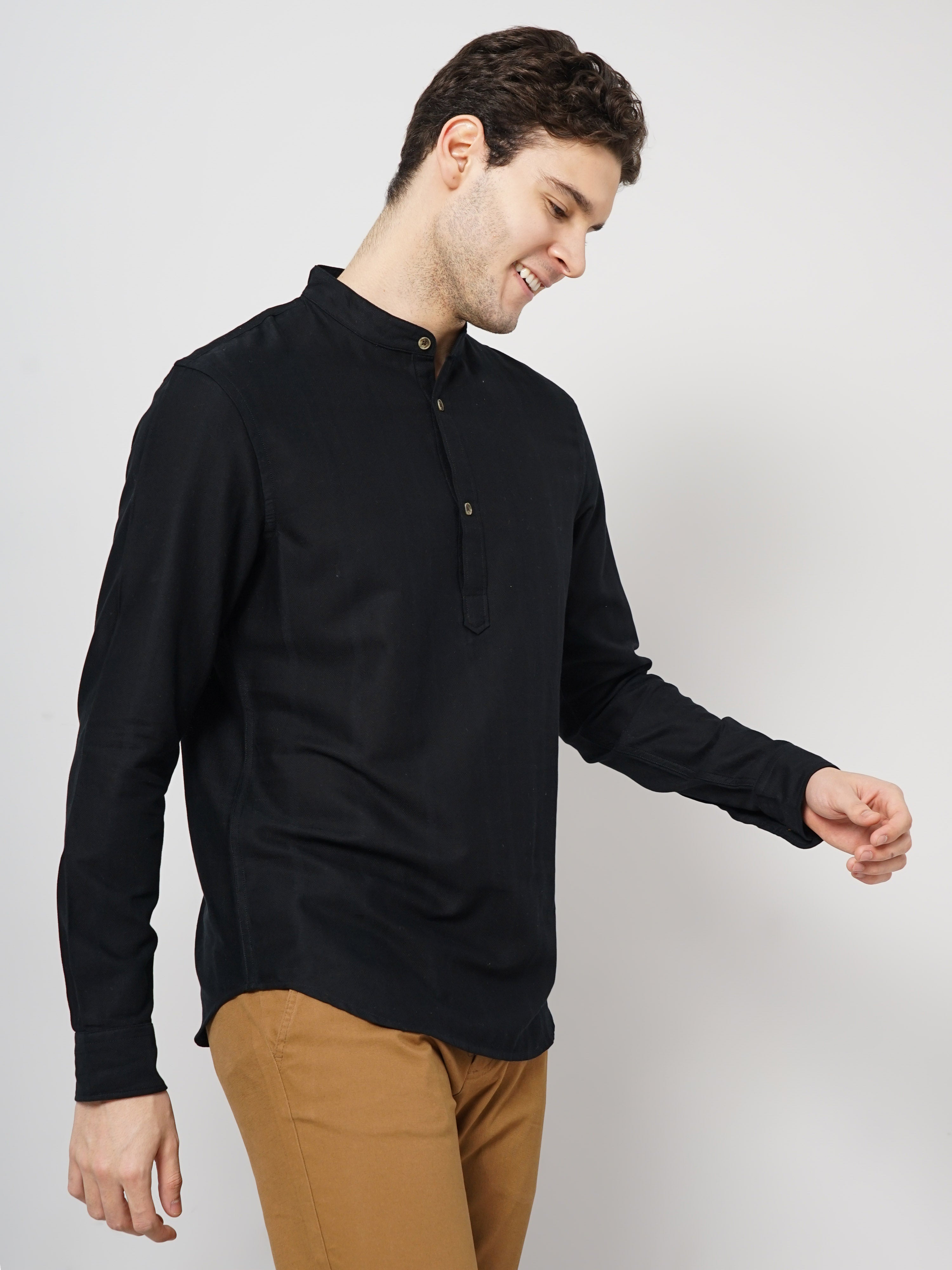 Celio* Solid Regular Fit Viscose-Blend Black Shirts