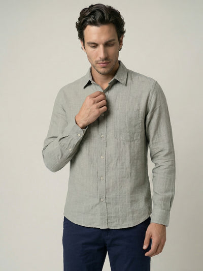 Celio Mens Green Solid Regular Fit Linen Shirts