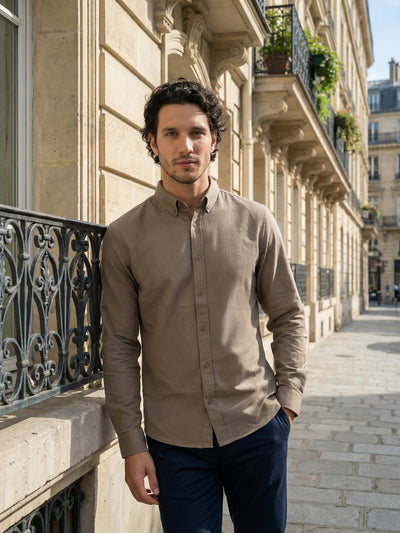 Celio Mens Khaki Solid Regular Fit Linen Shirts