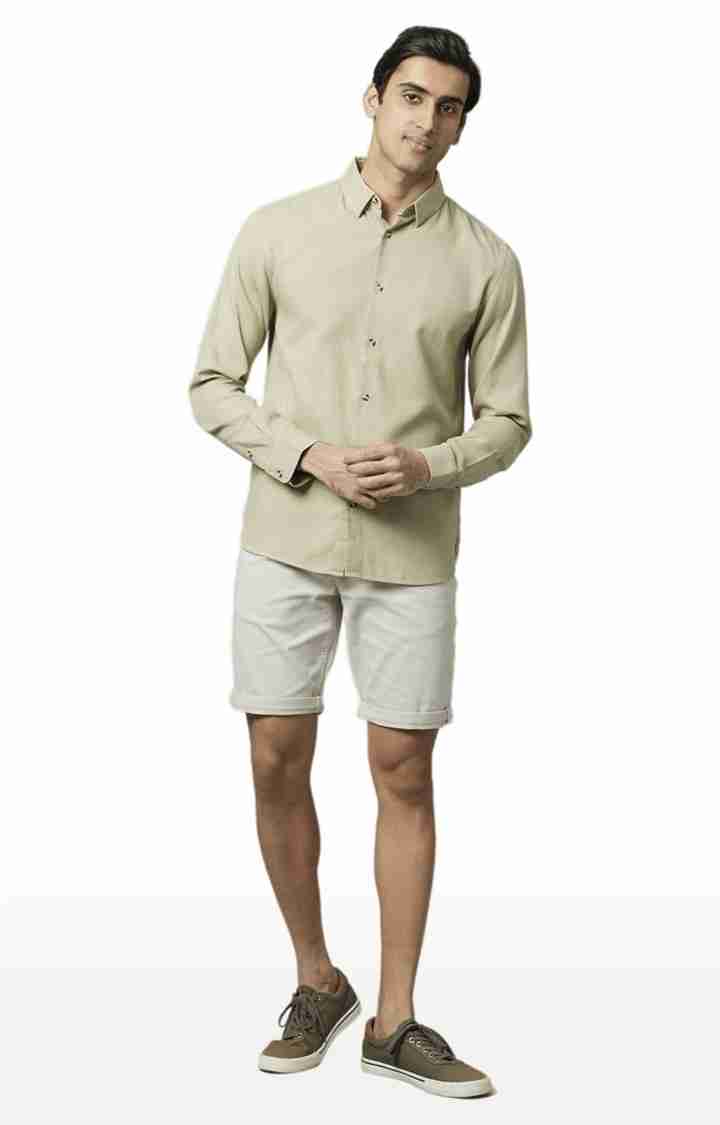 Celio* Solid Regular Fit Cotton Olive Shirt