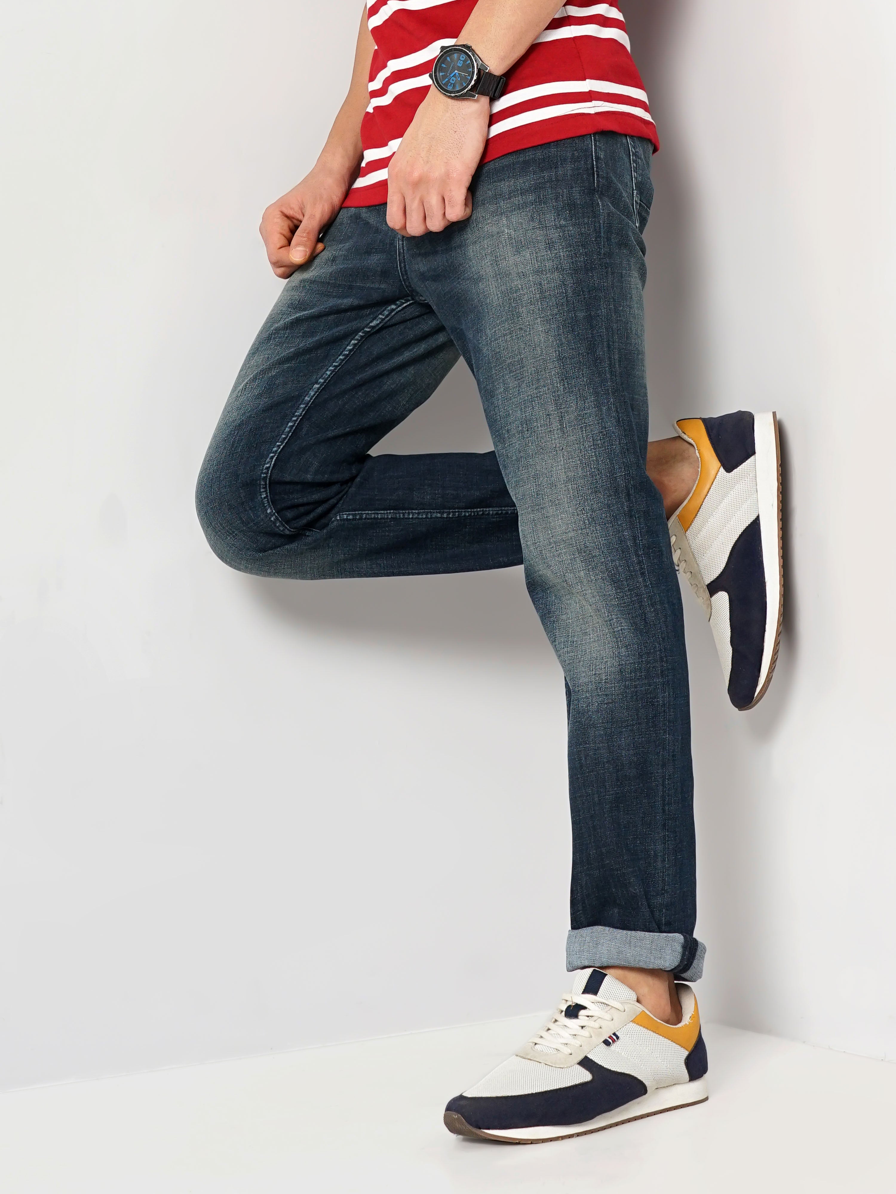 Celio* Cotton-Blend Slim Fit Navy Blue Jean