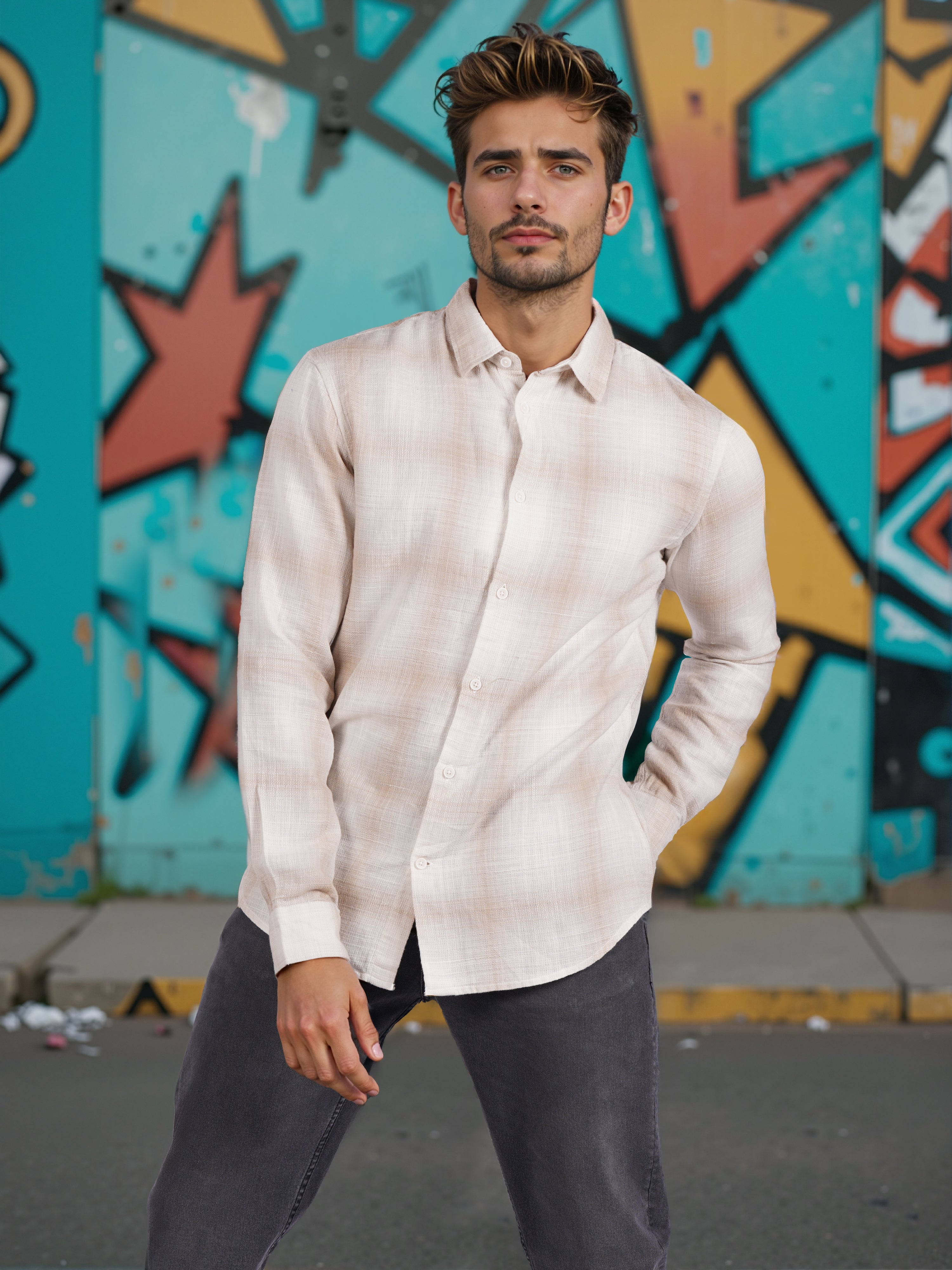 Celio* Solid Regular Fit Cotton Beige Shirt