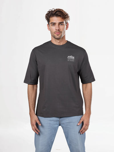 Celio* Printed Loose Fit Cotton Grey T-Shirt
