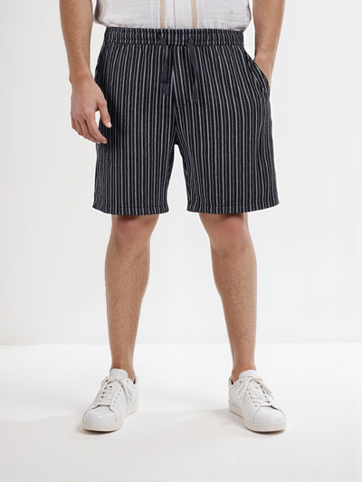 Celio* Striped Regular Fit Cotton Navy Blue T-Shirt