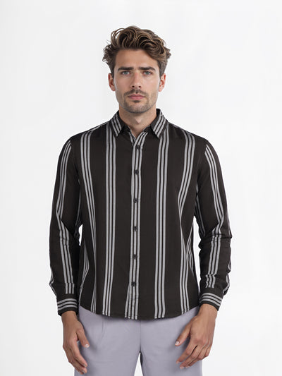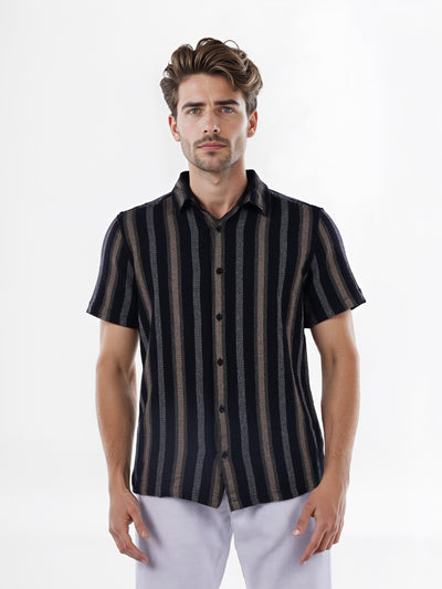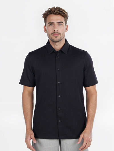 Celio* Solid Regular Fit Poly-Cotton Black Shirt