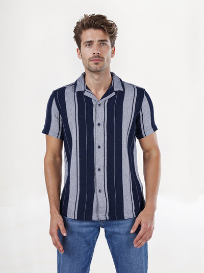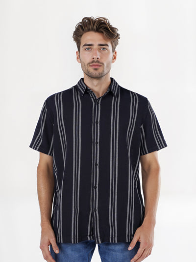 Celio* Solid Regular Fit Cotton Navy Blue Shirt