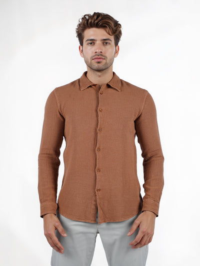 Celio* Solid Regular Fit Cotton Brown Shirt