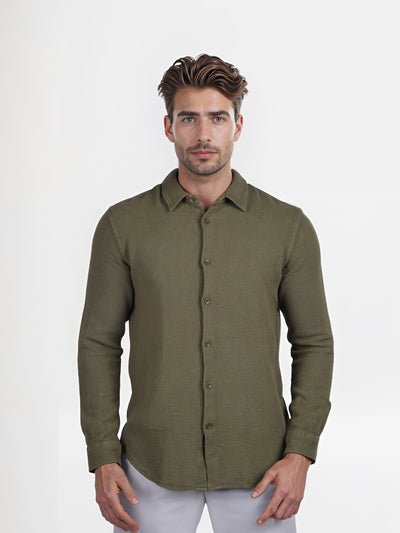 Celio* Solid Regular Fit Cotton Olive Shirt