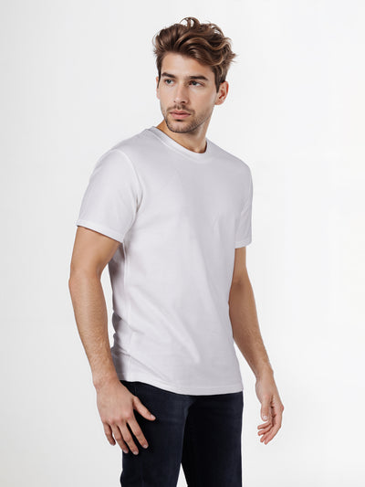 Celio* Solid Slim Fit Cotton White T-Shirt