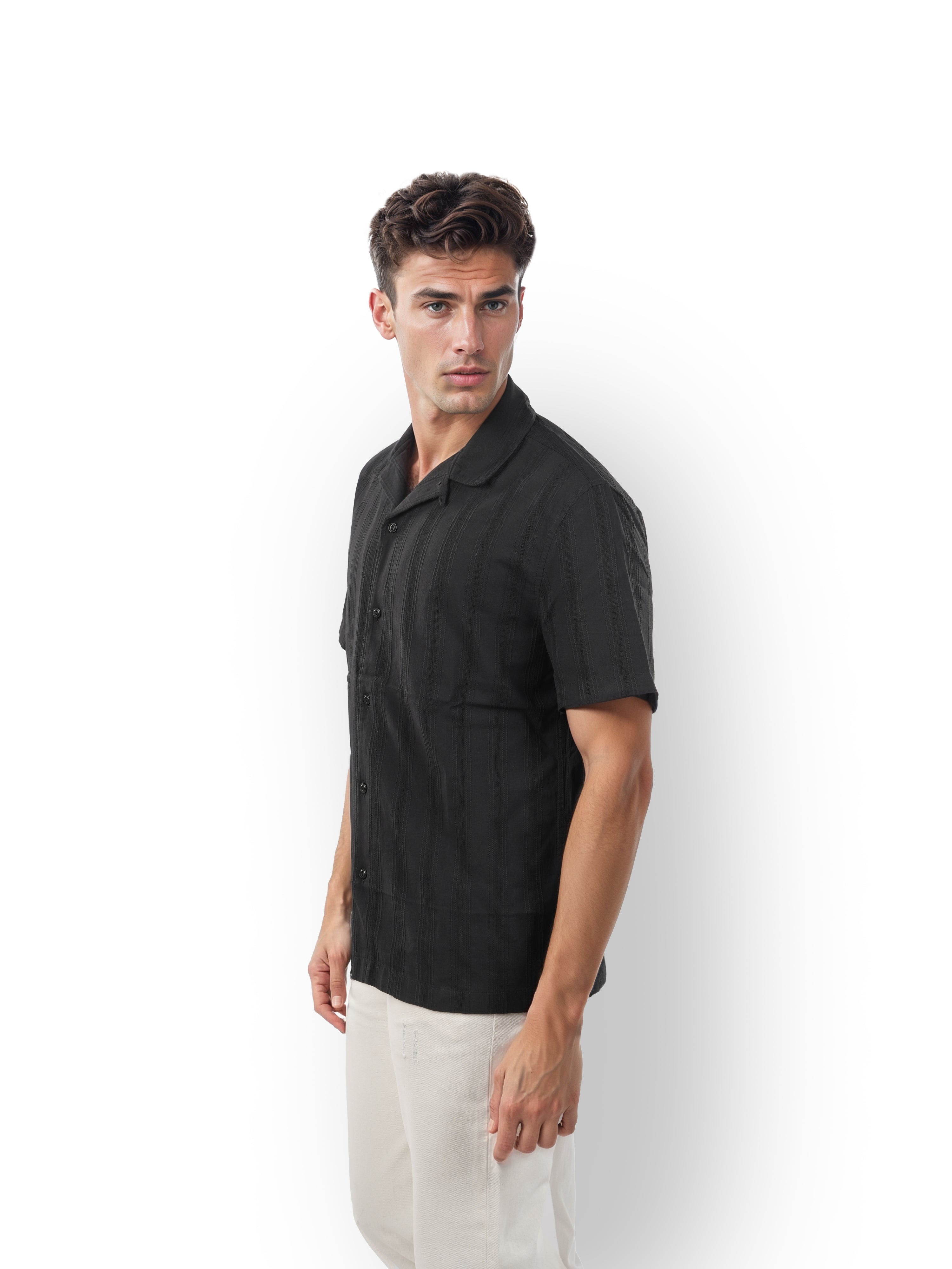 Celio* Striped Regular Fit Viscose Black Shirt