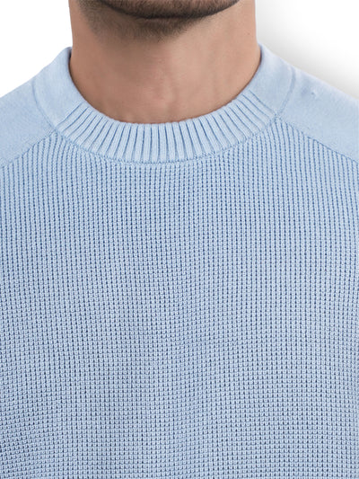 Celio* Solid Regular Fit Cotton Blue Sweater