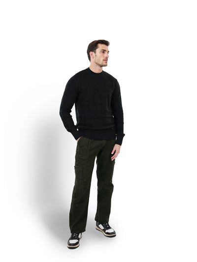 Celio* Solid Regular Fit Cotton Black Sweater